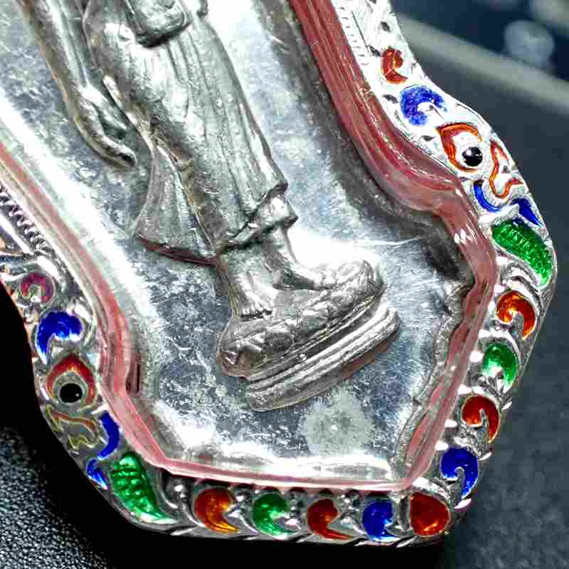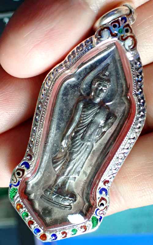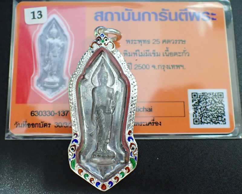 เหรียญ 25 ศตวรรษ เนื้อตะกั่ว พิมพ์พระศกจุด ปี2500 สภาพสวยๆเดิมๆ เลี่ยมกรอบเงินแท้กันน้ำสั่งตัดอย่างดี พร้อมบัตรรับรอง |