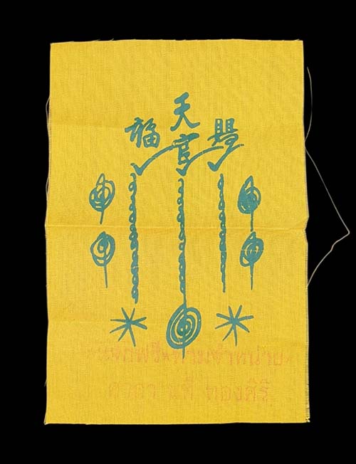"วัดใจ เคาะเดียว" ผ้ายันต์ฟ้าประทานพร + รูปถ่าย อาจารย์โง้วกิมโคย (เซียนแป๊ะโรงสี) วัดศาลเจ้า จ.ปทุมธานี |
