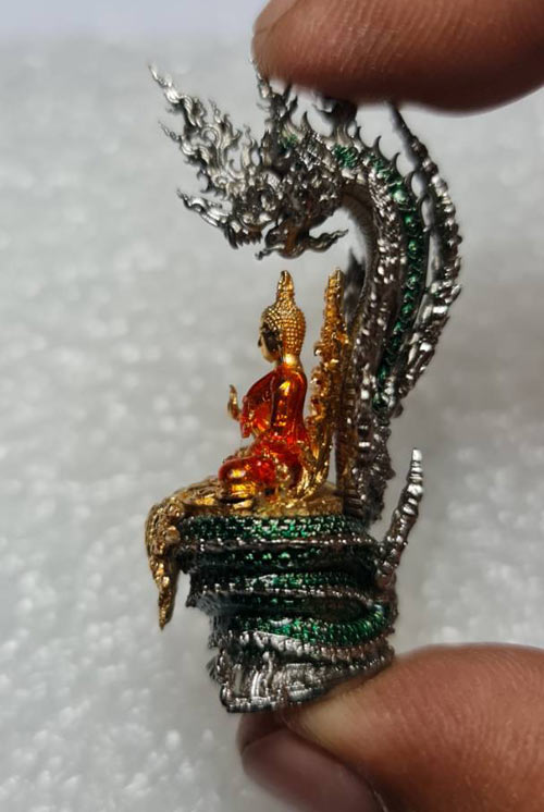 พระนาคปรก รุ่น "พรภควันต์" วัดลอน พัทลุง รายการที่ 11 องค์พระฃนวนชุบทองลงยาจีวรสีส้ม ฐานนากชนวนชุบเงินลงยาเขียว หมายเลข 225 พร้อมกล่องเดิมๆครับ (จอง 1,400)
