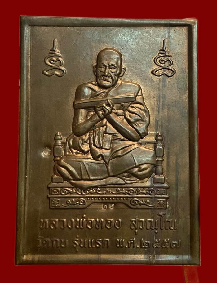 แผ่นปั๊ม รุ่นแรก หลวงพ่อทอง สุวณฺโณ วัดกบ จ.นครสวรรค์ เนื้อทองแดง ขนาด 3 * 4 นิ้ว สวย หมายเลข 21 ปี 2557 |