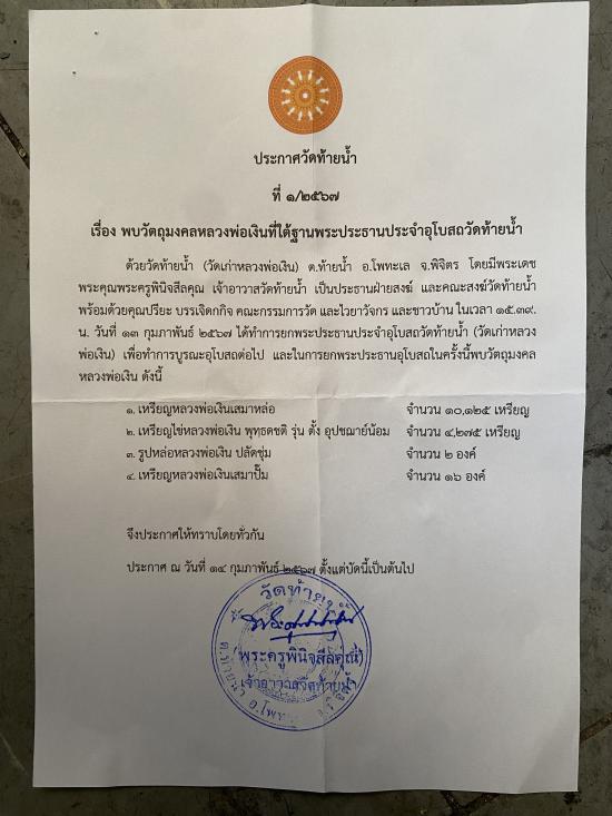 วัดใจเคาะเดียวได้แค่ไหนเอาแค่นั้น เหรียญหลวงพ่อเงิน วัดท้ายน้ำ(วัดเก่าหลวงพ่อเงิน) สร้างปี2500 ค้นพบที่ใต้ฐานพระประธานในโบสถ์ เนื่องจากทางวัดต้องการบูรณะอุโบสถวัดท้ายน้ำ พบวัตถุมงคลจำนมาก มี 4 แบบ แบบที่นำมาลงประมูลคือ เหรียญหลวงพ่อเงินเสมาหล่อ พร้อมกล่องและใบรับรองจากทางวัด ไม่ต้องวัดตาวัดดวง พระแท้100% |