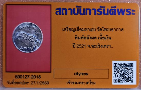 เหรียญเสือมหาเฮง โชคดี เนื้อเงิน หลวงพ่อสุด วัดกาหลง ออกวัดโพรงอากาศ ปี 2521