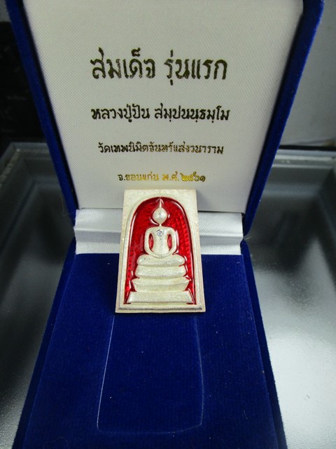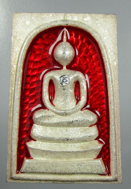 สมเด็จหล่อ รุ่นแรก หลวงปู่ปัน วัดเทพนิมิตร ขอนแก่น เนื้อเงินลงยาแดงฝังเพชร สร้างน้อยมากๆ