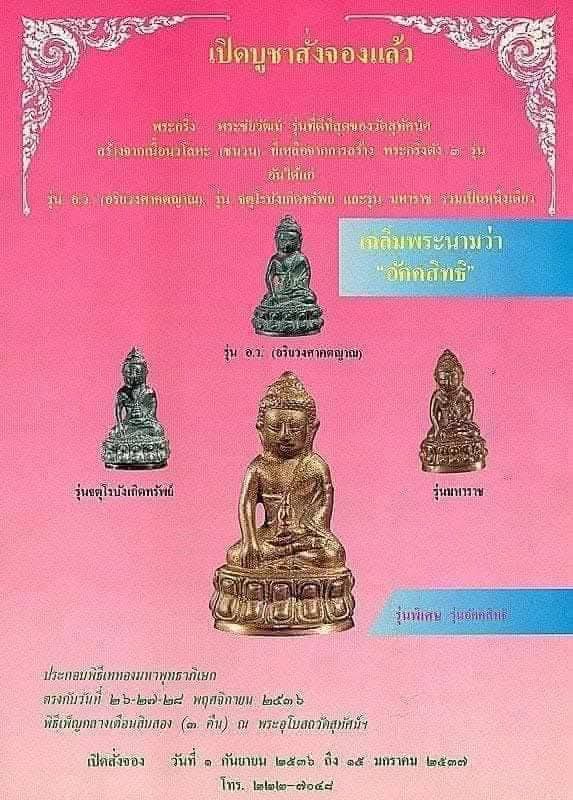 🤍 รุ่น อัคคสิทธิ สร้างในปี พ.ศ. ๒๕๓๖ ซึ่งถือว่าเป็นปีที่มีความสำคัญยิ่งของวัดสุทัศน์ฯ คือเป็นปีที่ ๔๙ ของการสิ้นพระชนม์ของสมเด็จพระสังฆราช (แพ) พระองค์ผู้สร้างตำนานการสร้างพระกริ่ง จนเป็นที่ยอมรับว่า บรรดาพระเครื่องที่หล่อโบราณจะหาพระเครื่องชนิดอื่นที่มีพุทธศิลป์สวยงาม และค่านิยมบูชาสูงเท่ากับพระกริ่ง ไม่มี และเพื่อเผยแผ่พระเกียรติคุณของเจ้าประคุณสมเด็จฯ ที่เป็นบูรพาจารย์ผู้ประสิทธิ์ประสาทวิชาให้ไว้เป็นมรดกของวัด ทางสำนักวัดสุทัศน์ฯ จึงได้จัดสร้างพระกริ่ง-พระชัยวัฒน์ เนื้อนวโลหะพิเศษ โดยนำเอาเนื้อชนวนนวโลหะที่เหลือจากการสร้างพระกริ่ง ๓ รุ่น ๓ เนื้อ ดังที่กล่าวมาแล้วข้างต้นมารวมเป็นเนื้อเดียว เฉลิมพระนามมงคลพระกริ่ง อัคคสิทธิ์