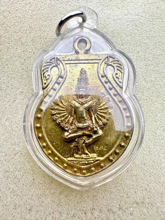เหรียญหล่อโบราณเสมา หน้าหลวงปู่เกลี้ยง หลังนารายณ์แปลงรูป รุ ่นบุญฤทธิ์ เลข 175 |