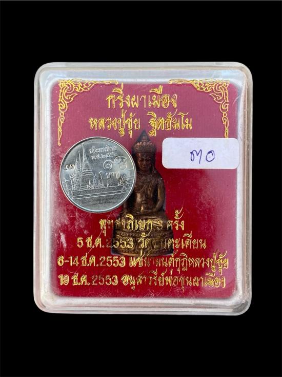 กริ่งผาเมือง หลวงปู่ขุ้ย วัดซับตะเคียน เพชรบูรณ์ เนื้อนวะ พ.ศ.2553 พร้อมเหรียญบาทขวัญถุง กล่องเดิม เคาะเดียว