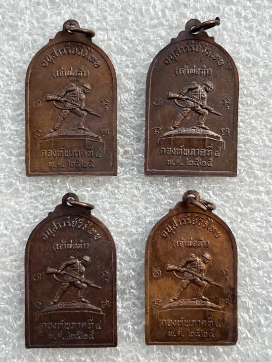 เหรียญรัชกาลที่6 ค่าวชิรวุธ นครศรีธรรมราช หลังเจ้าพ่อดำ กองทัพภาคที่4 ปี2525 เหรียญประสบการณ์ขวัญใจทหารใต้ สวยเดิม4เหรียญ