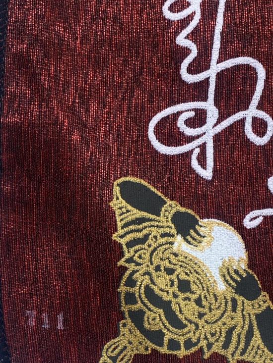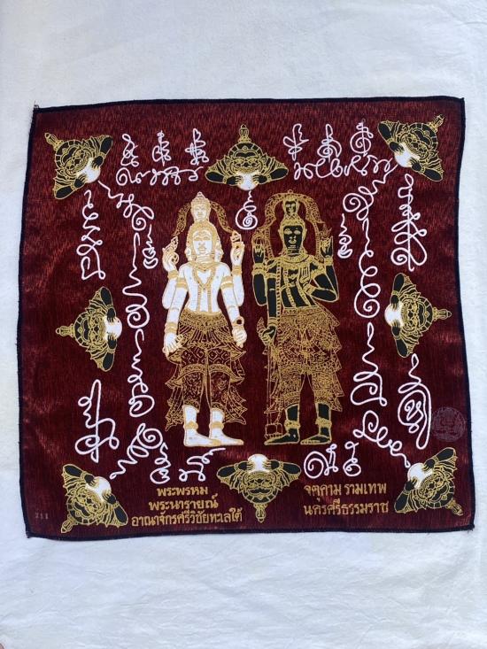 เคาะเดียวแดง ผ้ายันต์ พระพรหม พระนารายณ์ มิ่งมงคล รุ่นมงคลจักวาล ขนาด40/40ซม สีแดง มีตราประทับ-มีรันเลข |
