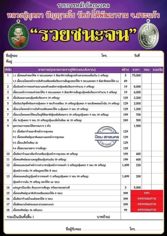 เคาะเดียวแดง หลวงปู่บุดดา รุ่น รวยชนะจน ชุดกรรมการ (โค๊ตกรรมการ2ตัว) รายการที่9