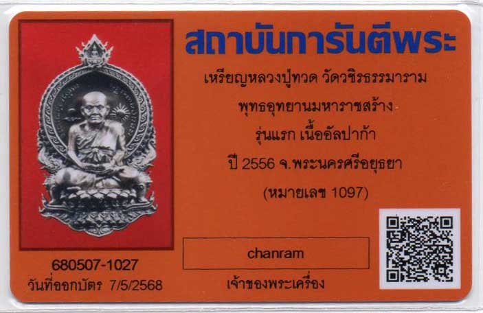 หลวงพ่อทวด พิมพ์เสมานั่งพาน รุ่น๑ พุทธอุทยานมหาราช เนื้ออัลปาก้า หมายเลข*๑๐๙๗