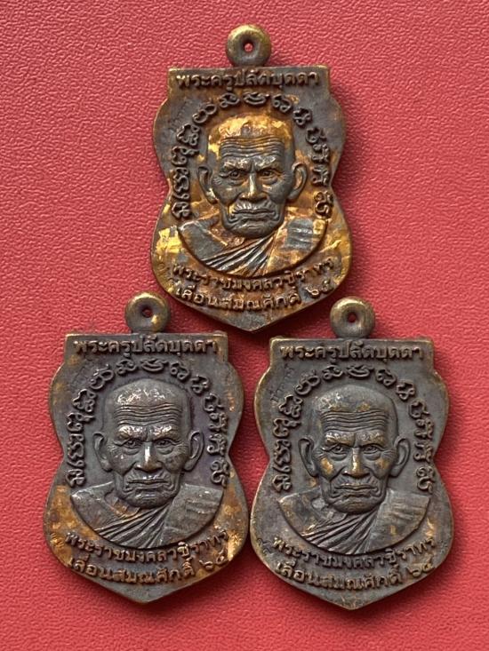 เคาะเดียวแดง เหรียญหล่อ หลวงปู่ทวดหลังหลวงปู่บุดดารุ่น เลื่อนสมณศักดิ์(3องค์) เนื้อ ชนวนนำฤกษ์