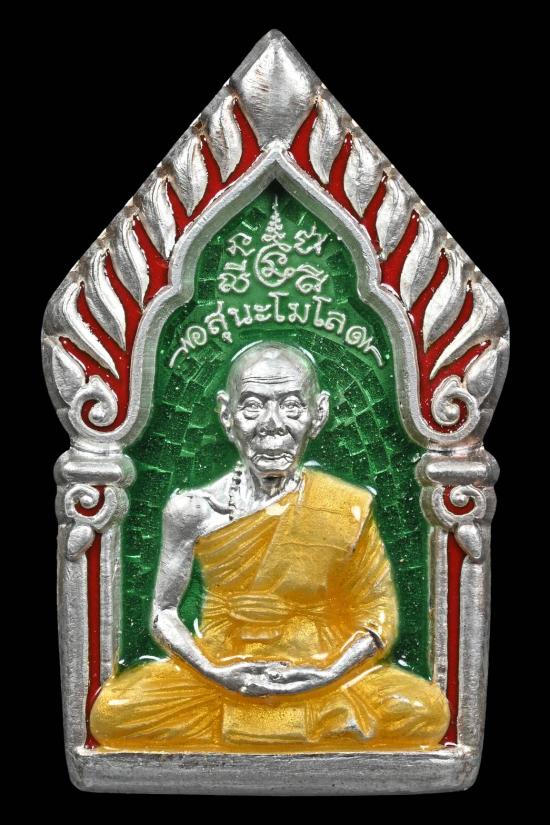 เหรียญซุ้มเรือนแก้ว รุ่น1 พิมพ์ใหญ่ (เนื้อเงินลงยาสีเขียว) หลวงพ่อเพี้ยน วัดเกริ่นกฐิน ปี2549 จ.ลพบุรี หมายเลข 42 สร้างแค่ 80 องค์