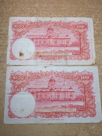 แบงค์ธนบัตรรุ่นเก่าใบละ๑๐๐บาท๒ใบสภาพใหม่ แบ่งปันครับ