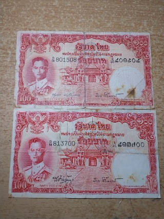 แบงค์ธนบัตรรุ่นเก่าใบละ๑๐๐บาท๒ใบสภาพใหม่