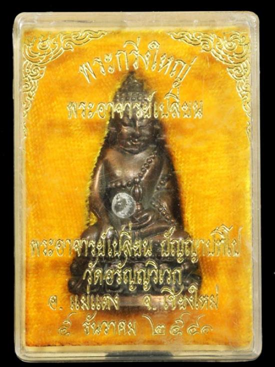 จัดสร้างปี พ.ศ.2541 เมตตาอธิษฐานจิตเดี่ยวโดย พระอาจารย์เปลี่ยน ปัญญาปทีโป วัดอรัญญวิเวก (บ้านปง) อ.แม่แตง จ.เชียงใหม่ เมื่อวันที่ 5 ธันวาคม 2541 (วันพ่อแห่งชาติ)