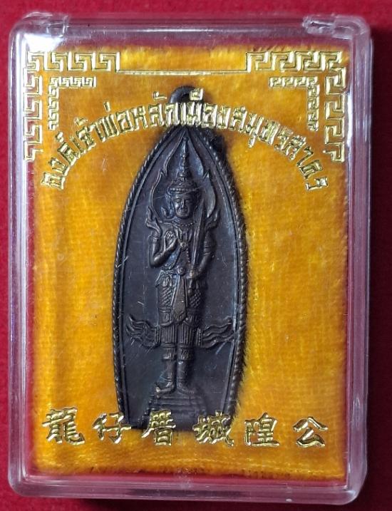 เหรียญพระสยามเทวาธิราช เจ้าพ่อหลักเมืองสมุทรสาคร ปี2524 เป็นเหรียญเนื้อทองแดง สภาพสวยมากๆและมาพร้อมกล่องเดิมๆด้วยนะครับ |