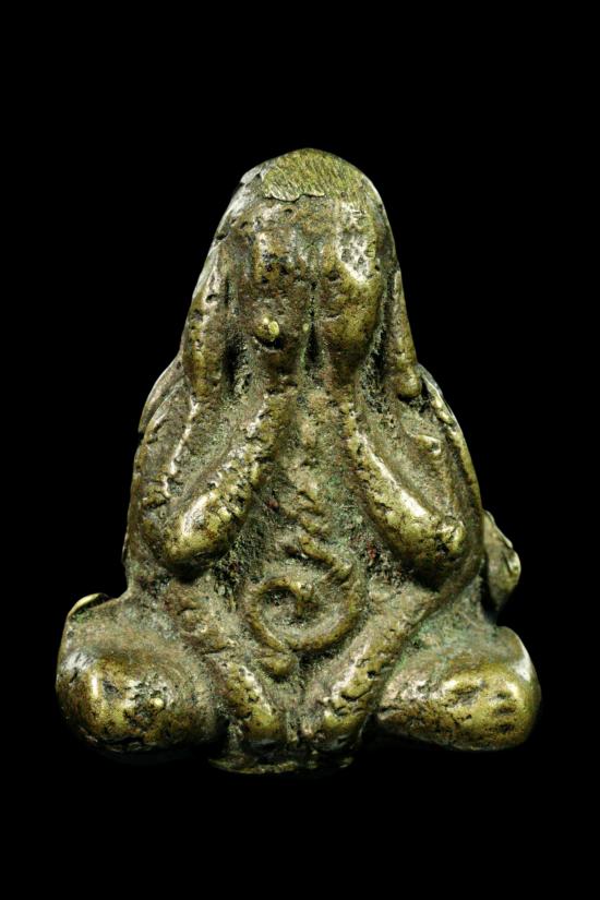 พระปิดตาเนื้อทองผสม รุ่นแรก หลวงพ่อยุ้ย วัดบางกะปิ กรุงเทพฯ ปี2485 สภาพสวยผิวเดิมๆ เเต่งหูด้านบนออกเก่ามาเเต่เดิมครับ |