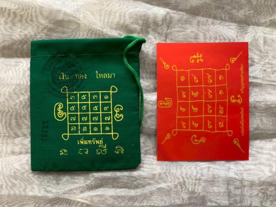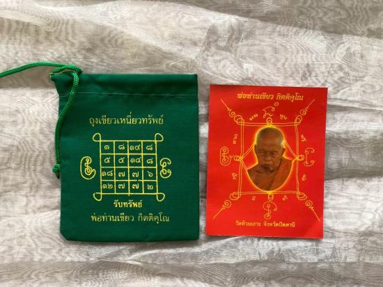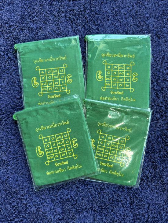 เคาะเดียว 4ชิ้น 220... ถุงเขียวเหนี่ยวทรัพย์ (ยันต์รับทรัพย์เพิ่มทรัพย์) รุ่นแรก ปี53 พ่อท่านเขียว วัดห้วยเงาะ จ.ปัตตานี (ถุงเขียว+แผ่นภาพหลวงปู่) |
