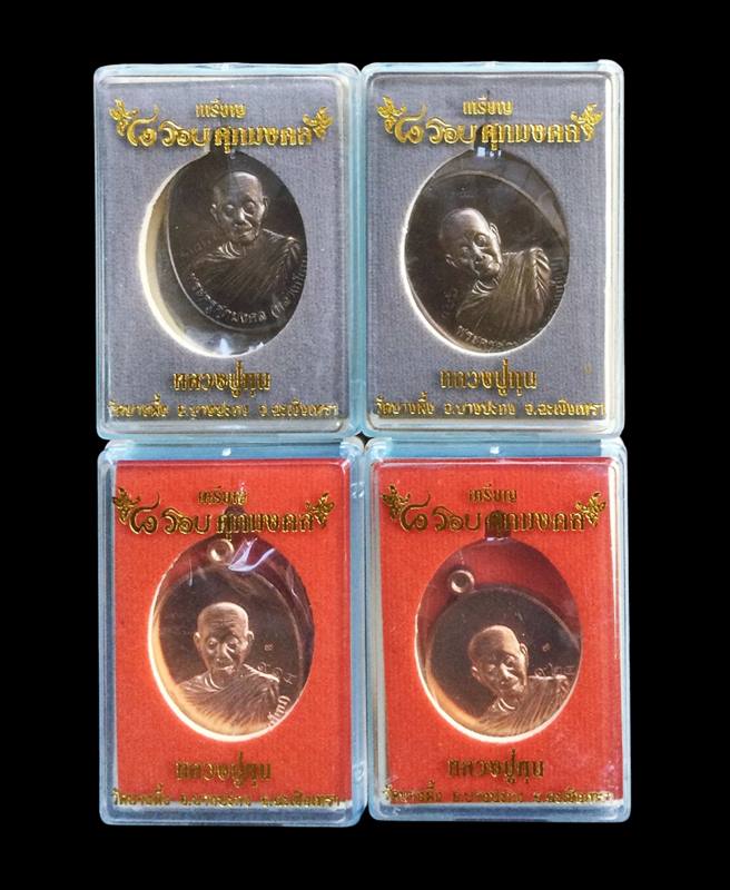 +!!เคาะเดียวllดง ตลอดสาย!!+ (รับ 4 เหรียญ) เหรียญห่มคลุม 8 รอบ ศุภมงคล หลวงปู่หุน วัดบางผึ้ง จ.ฉะเชิงเทรา ปี2558 (เนื้อชนวน2+ทองแดง2) เลขโค้ดสวยๆตามรูปเลยครับ |