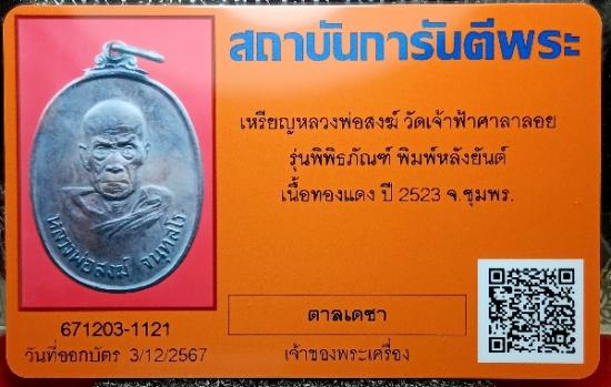 เหรียญหลวงพ่อสงฆ์ วัดเจ้าฟ้าศาลาลอย รุ่นพิพิธภัณฑ์ พิมพ์หลังยันต์ เนื้อทองแดง ปี2523 พระสวยผิวเดิมสภาพตามรูปเลยครับ มาพร้อมบัตรการันตีพระ