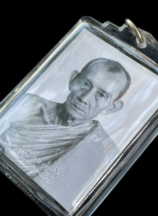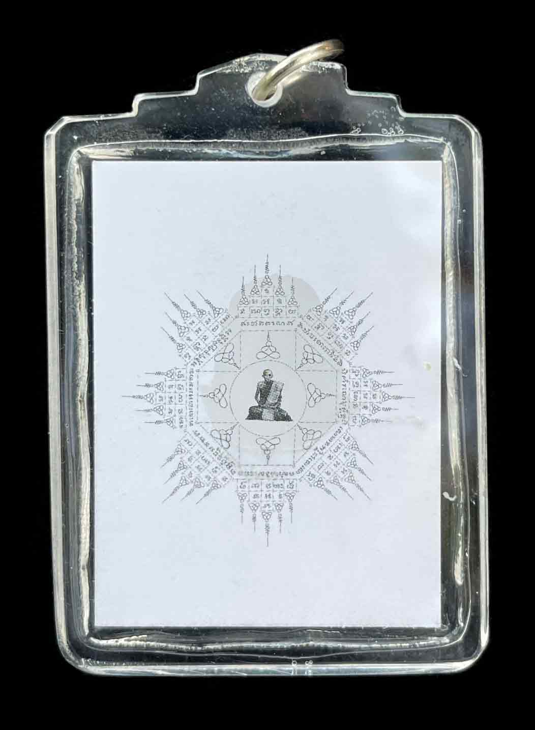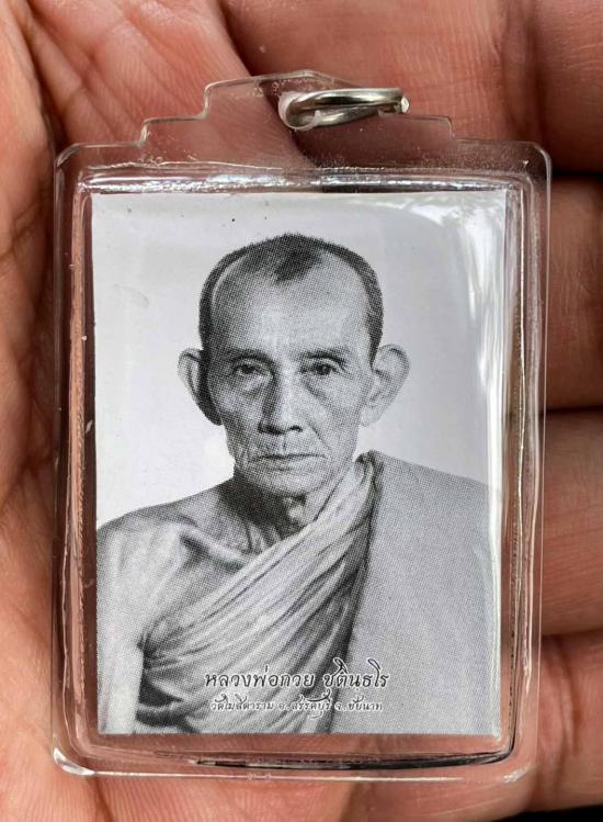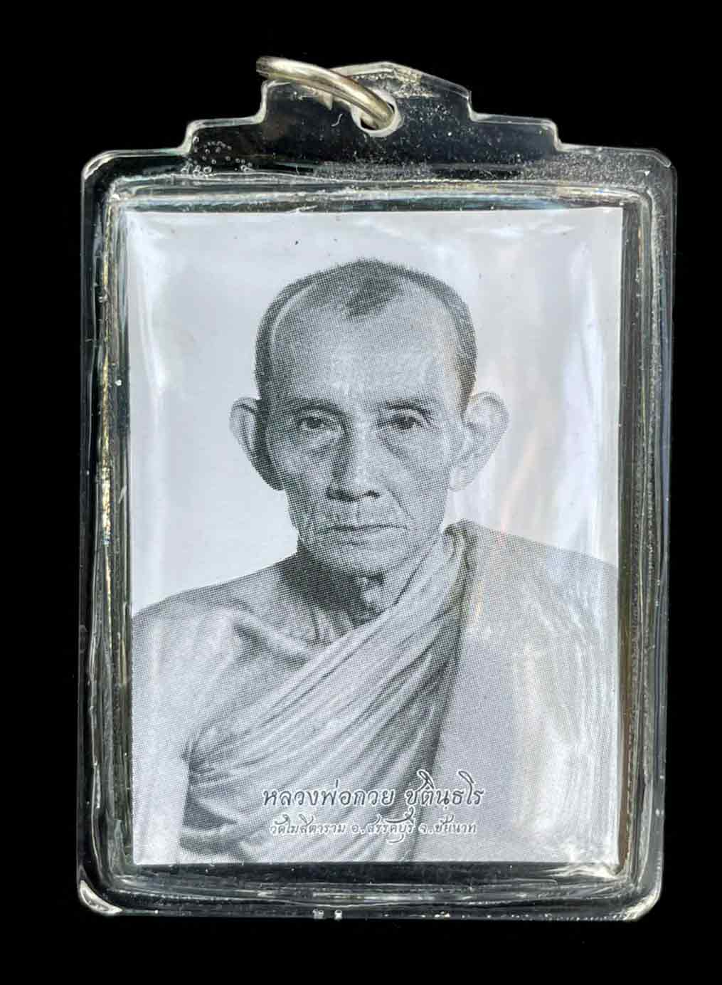 รูปถ่ายครึ่งองค์ หลังยันต์แปดทิศ หลวงพ่อกวย วัดโฆสิตาราม ชัยนาท ปี 2556 เลี่ยมพลาสติกเดิม สวยงาม