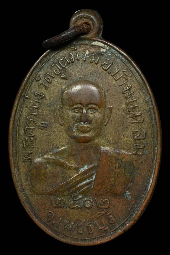 เหรียญหลวงพ่อเห่ง วัดอุตมิงค์ หลังเรียบมีจาร รุ่น2 เนื้อทองแดงกะไหล่ทอง ปี2502 จ.เพชรบุรี.