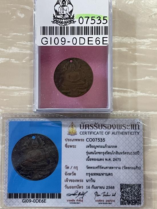 (เคาะแดง2500) +บัตรสมาคม เหรียญพระแก้วมรกต วัดพระแก้ว 2475