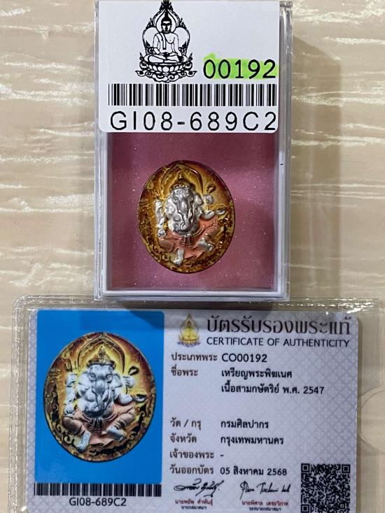 (เคาะแดง1500) +บัตรสมาคม เหรียญพระพิฆเนศ กรมศิลปากร เนื้อสามกษัตริย์