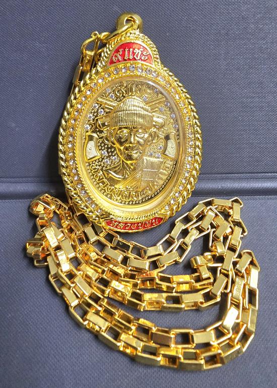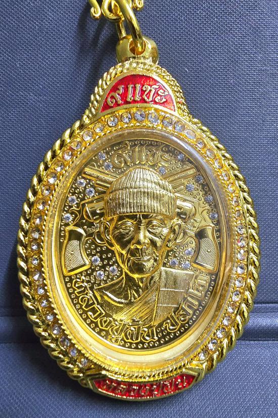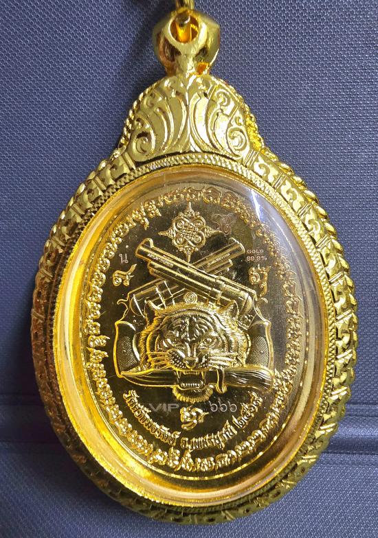 เนื้อนวะโลหะ ชุบน้ำทองคำแท้ 99.9% ทั้งองค์ ฝังเพชรเต็มพื้น หลังเสือคาบดาบปืนไขว้