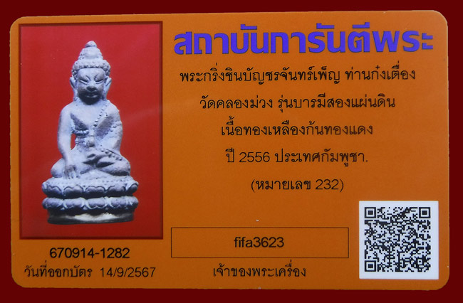 แดงที่เคาะแรก !!! พระกริ่ง ชินบัญชรจันทร์เพ็ญ เนื้อสัมฤทธิ์ก้นทองแดง ก๋งเตื่อง วัดคลองม่วง (ตอกโค๊ต+เลขสวย 232)+ บัตรพระแท้