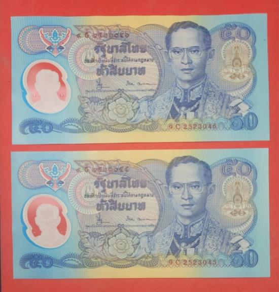 ธนบัตร 50 บาท กาญจนาภิเษก 2 ฉบับ เลขเรียง