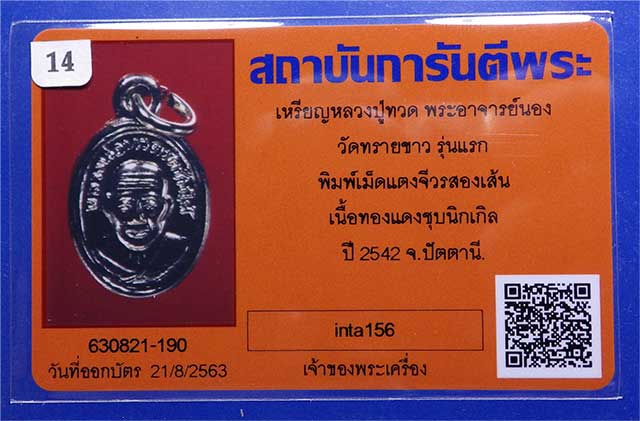 เหรียญเม็ดแตง อาจารย์นอง รุ่นแรก พิมพ์จีวรสองเส้น วัดทรายขาว ปี 2542...14...63.8.24
