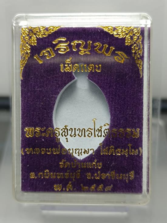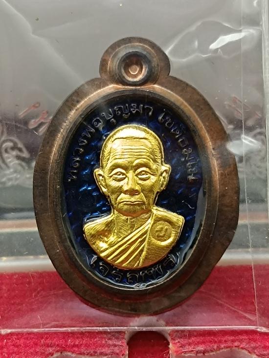 เหรียญเจริญพร (เม็ดแตง) ปี 2559 หลวงปู่บุญมา โชติธมฺโม เนื้อนวะโลหะลงยา หน้ากากทองคำ ไม่ตัดปีก หมายเลข 62
