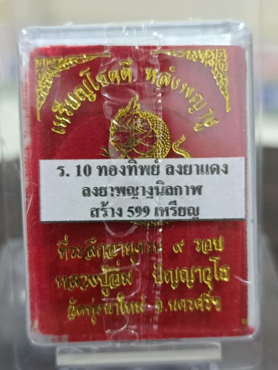 เหรียญโชคดี หลังพญางู วาระ ๙ รอบ หลวงปู่อิ่ม ปญฺญาวุโธ วัดทุ่งนาใหม่ จ.นครศรีธรรมราช (ขนาดเหรียญ 3.0 ซม.) เนื้อทองทิพย์ลงยาแดง ลงยาพญางูเพลิง ซีลเดิม ลุ้นเลขสวย/เลขมงคลครับ (5)