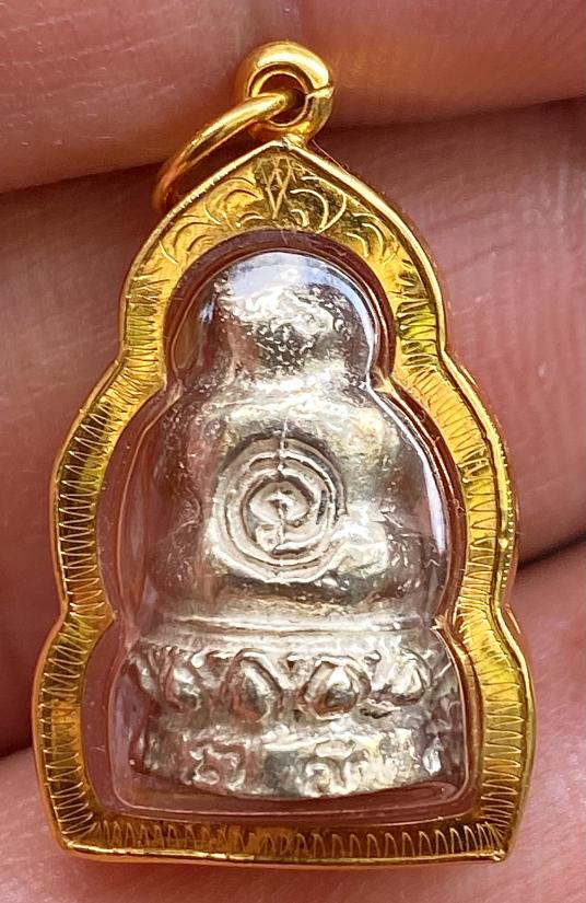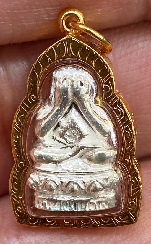 พระปิดตาเนื้อเงิน รุ่นพุทธคุณ หลวงพ่อเกษม เขมโก พร้อมเลี่ยมทองสวยๆ