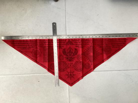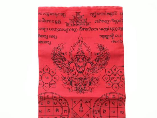 ผ้าประเจียด พญาครุฑ ไม่ทราบวัด สีแดง พิมพ์ดำ ขนาด กว้าง 14 นิ้ว ยาว 40 นิ้ว |