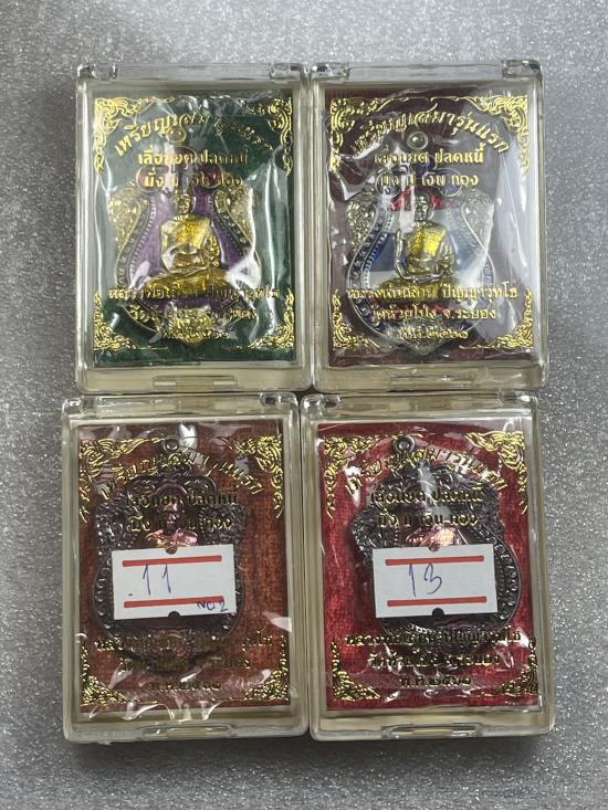 **เคาะแรกแดงที่ 150 บาท** รับพระ 4 เหรียญ เหรียญเสมารุ่นแรก หลวงพ่อเลื่อน วัดห้วยโปร่ง จ.ระยอง เลื่อนยศ ปลดหนี้ ไม่ทราบเนื้อ พร้อมกล่องเดิม เป็นพระที่ผมเหมาบ้านมาได้จบเท่าไหร่เท่านั้นครับ