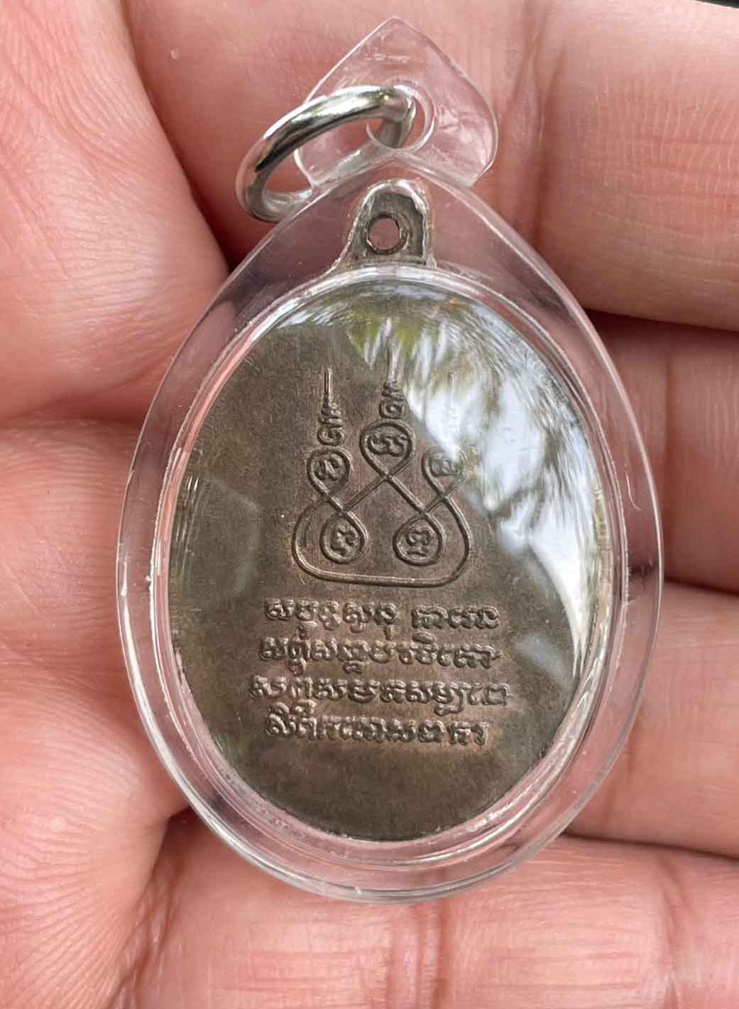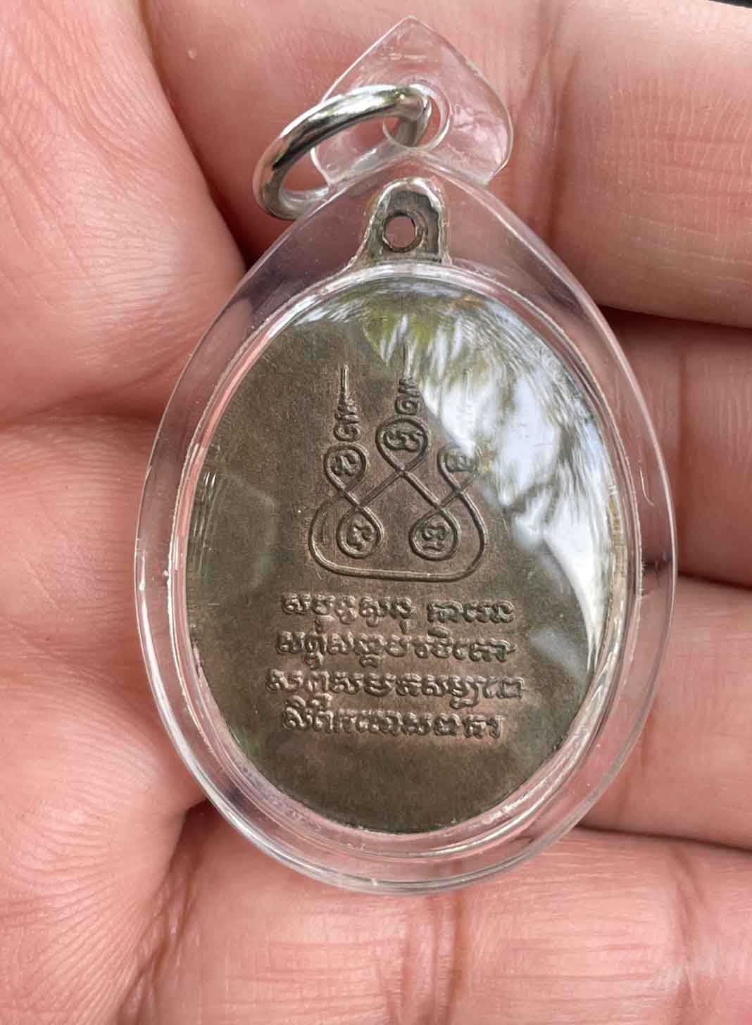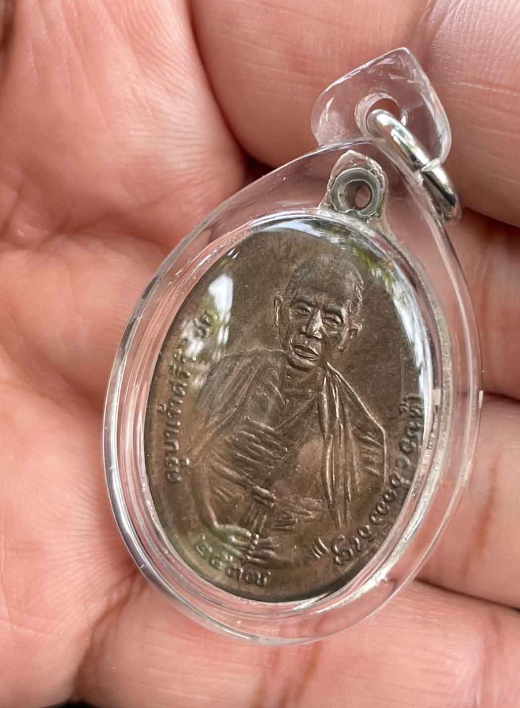 เหรียญครูบาศรีวิชัย ปี 2537 เนื้อนวะโลหะ ไม่ทราบที่ เลี่ยมพลาสติก สวยงาม