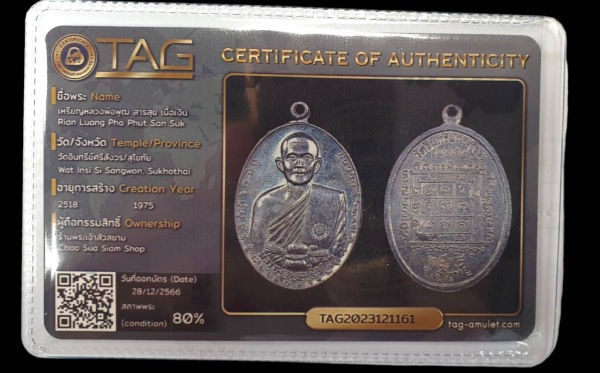 หลวงพ่อพุฒ สารสุข ท่านเป็นศิษย์อีกรูปหนึ่งของหลวงปู่ศุข วัดปากคลองมะขามเฒ่า เหรียญเนื้อเงิน รุ่นนี้สร้างจำนวนน้อย ค่อนข้างหายาก เนื้อเงิน มีตอกโค๊ดไว้ตรงสังฆาฏิด้านหน้าเหรียญ