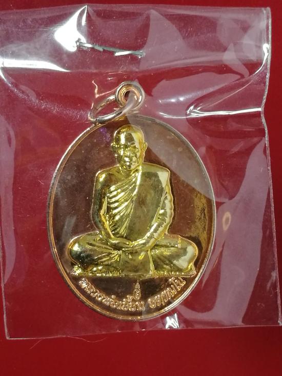 เหรียญรูปไข่รุ่นสร้างศาลาการเปรียญ หลวงพ่อเอื้อน วัดวังแดงใต้ จ.พระนครศรีอยุธยา ปี ๒๕๓๓ เนื้อทองแดงหน้าทอง