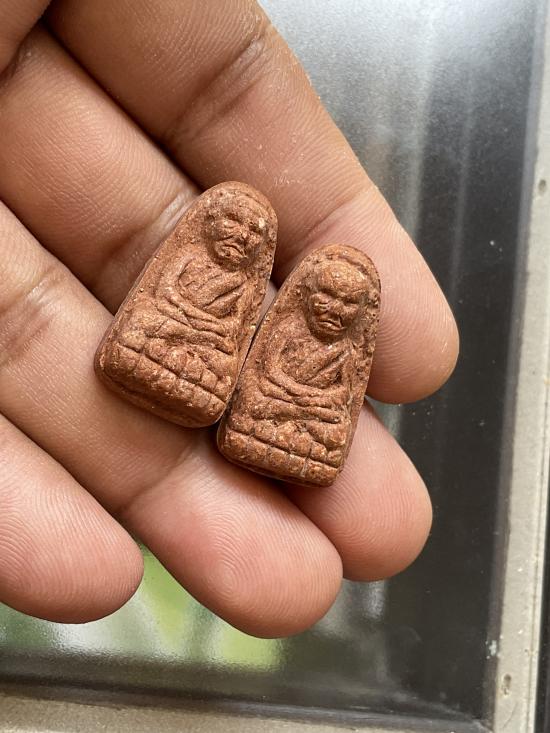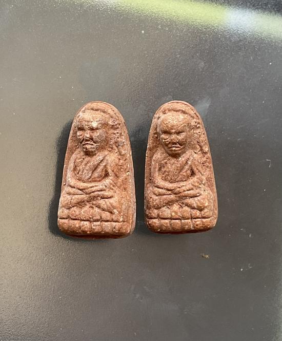 หลวงปู่ทวด วัดห้วยมงคล ปี49 เนื้อว่านสบู่เลือด ว่านเสน่ห์จันทร์แดง หลังข้าวสารหิน...เคาะเดียวแดง...ได้ 2องค์
