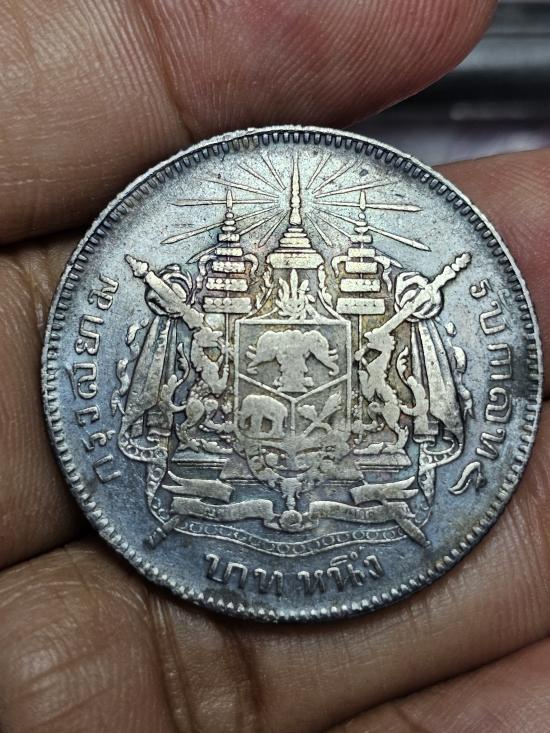 เหรียญ1บาทรัชกาลที่ 5 เนื้อเงินหลังตราแผ่นดิน |