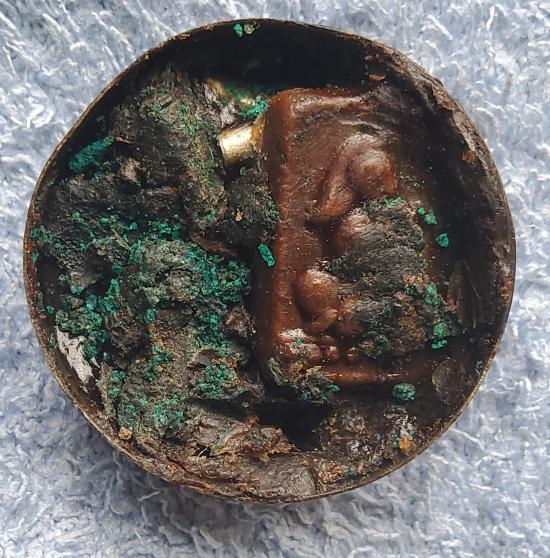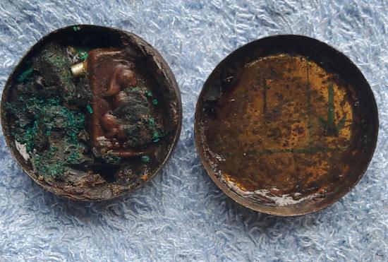 วัดใจ**********ตลับสีผึ้ง หลวงพ่อทาบ สีเขียว/น้ำตาล มีตะกรุดและนางกวัก |