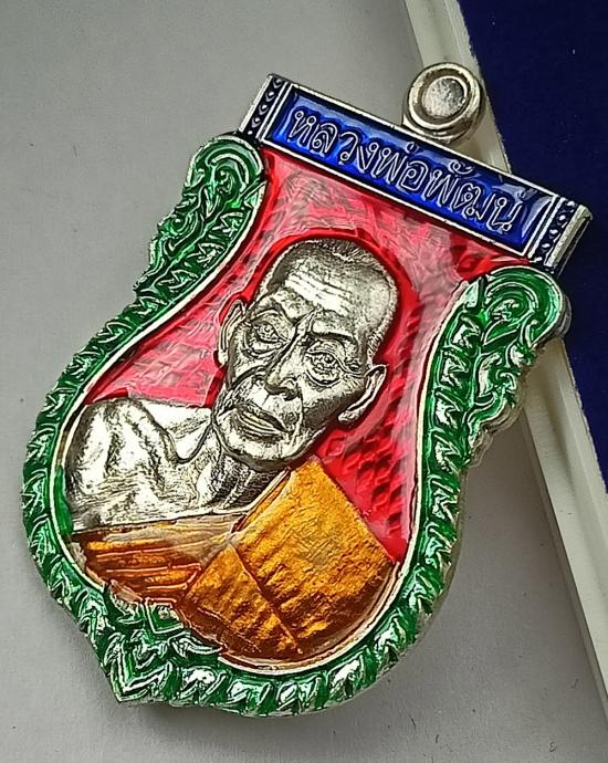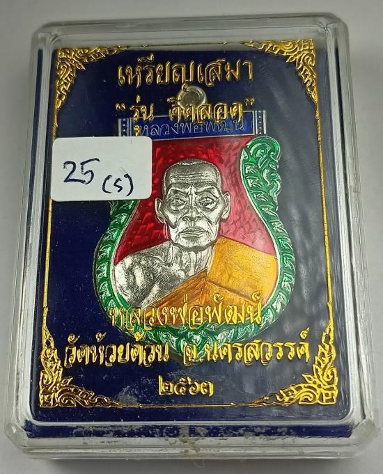 เหรียญเสมา "ดีตลอด" หลวงพ่อพัฒน์ วัดห้วยด้วน เนื้อเงินลงยาขุ้ยพื้น เบอร์ 25 พร้อมกล่องเดิมครับ (S)