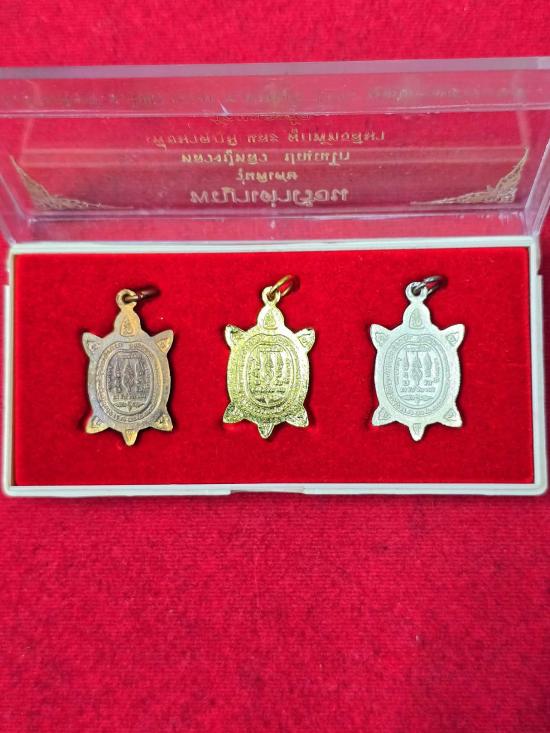 เหรียญเต่าหลวงปู่หลิว รุ่นเพื่อมาตุภูมิ ชุดกรรมการ 3 เหรียญ กะไหร่เงิน,กะไหร่ทอง,ทองแดง พ.ศ.2541 แท้ทันหลวงปู่หลิว สภาพสวยเดิมๆพร้อมกล่อง รับประกันแท้มาตรฐานสากลครับ