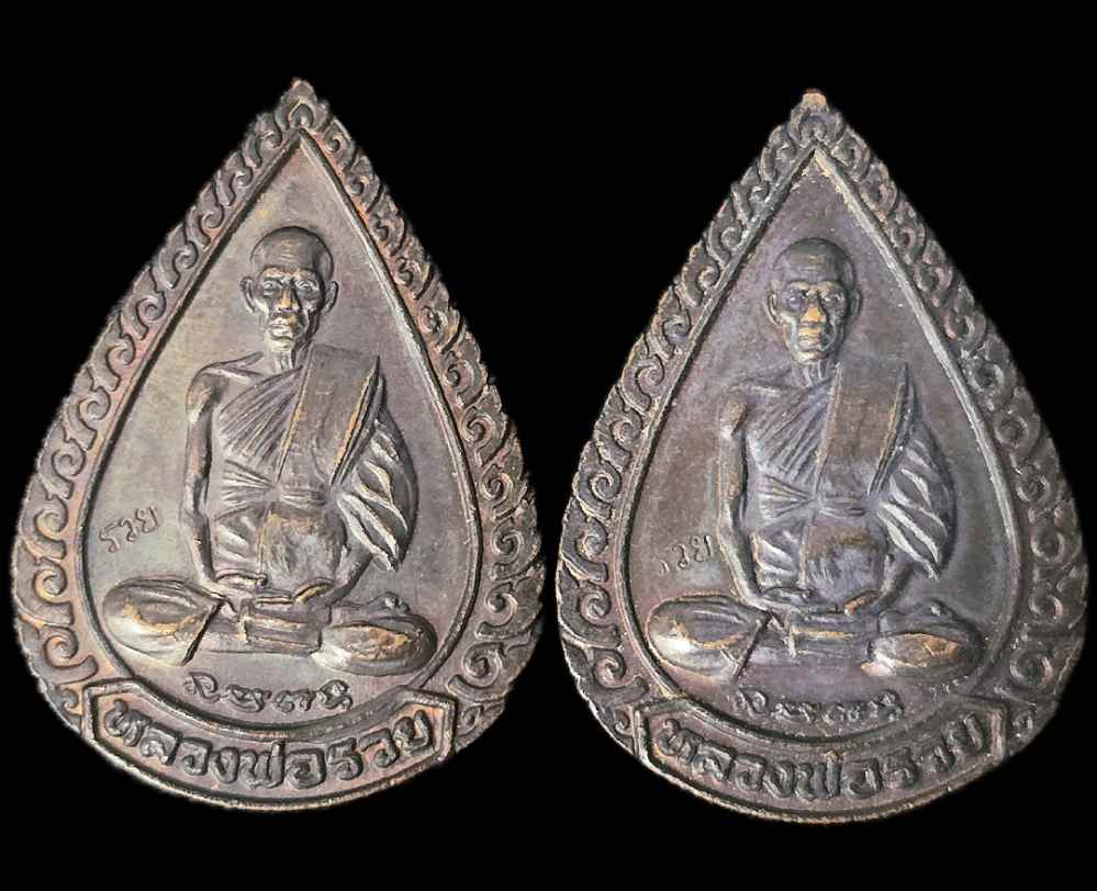 ชนะรับ 2 เหรียญ เหรียญแจกทานหยดน้ำ หลวงพ่อรวย วัดตะโก เนื้อทองแดง ตอกโค๊ต รวย จำนวนสร้าง 10,000 เหรียญ ปี 2539 รับประกันพระแท้และทันหลวงพ่อปลุกเสกครับ