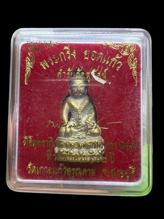 พระกริ่งยอดแก้ว กริ่งพิธีวัดสุทัศน์ สร้างจากพิมพ์และมวลสาร สมเด็จพระสังฆราชแพปี พ.ศ. 2482 มาปั้นแบบพิมพ์ขึ้นใหม่ เนื้อทองผสม หล่อดินไทยแบบโบราณ ผสมชนวนก้นเบ้าพระกริ่งสมเด็จพระสังฆราชแพ ตอกโค้ดยันต์โสฬสมงคล พิธีพุทธาภิเศก 3 วัน 3 คืน วันที่ 11 - 13 ก.ค. พ.ศ. 2545 ณ วัดเกาะแก้วอรุณคาม ต.หนองหมู อ.วิหารแดง จ.สระบุรี จำนวนสร้าง 9,999 องค์ |