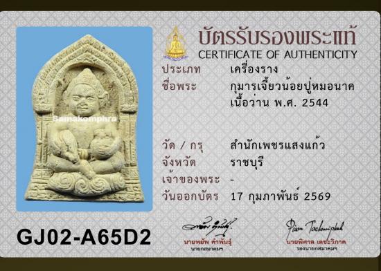 กุมารเจี๊ยวน้อย ปู่หมอนาค เพชรแสงแก้ว เนื้อว่าน ปี 2544 พร้อมบัตรรับรองสมาคม