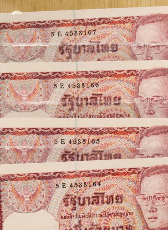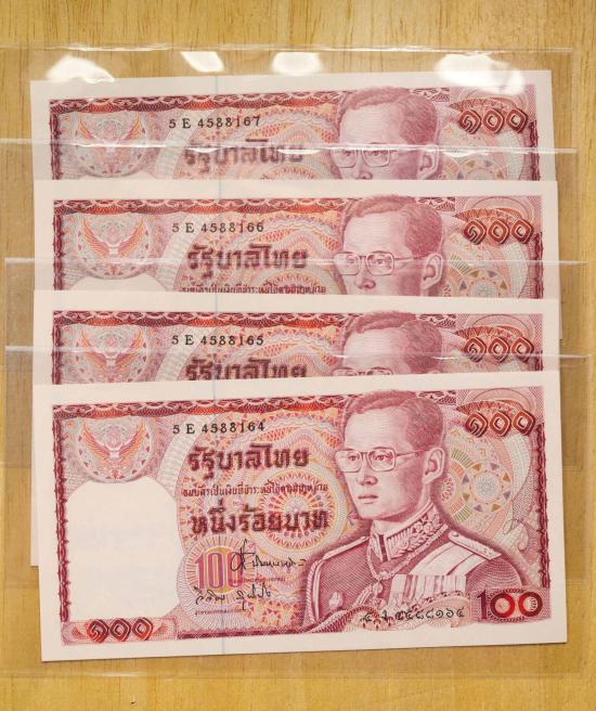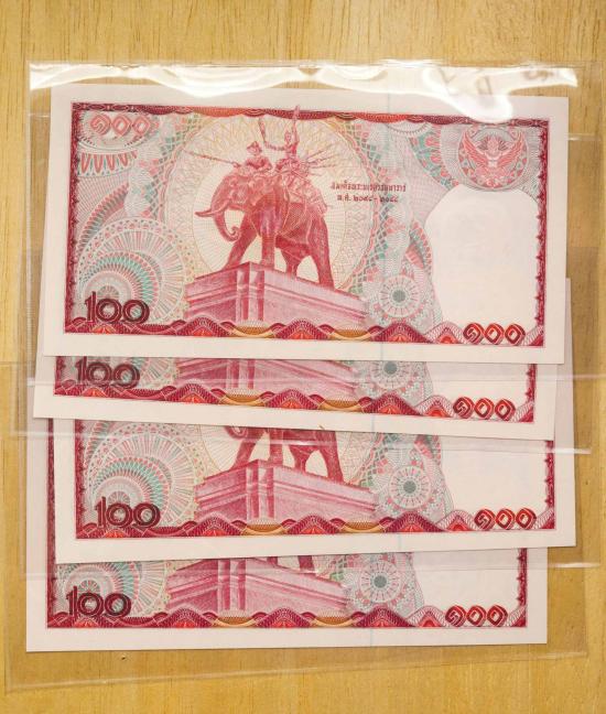 ธนบัตร 100 บาท รัชกาลที่ 9 ช้างแดง 4 ใบ ไม่ผ่านการใช้งาน |