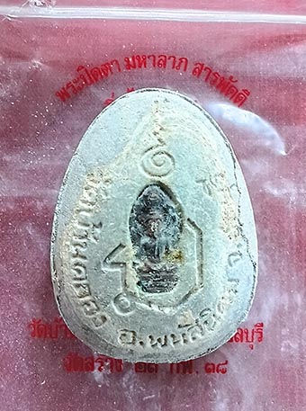 พระปิดตาวัดบ้านคลอง รุ่นสารพัดดี เนื้อผง(เทา) หลังฝังปรกใบมะขามและฝังตะกรุด ปี2538 พร้อมซองเดิมและกล่อง